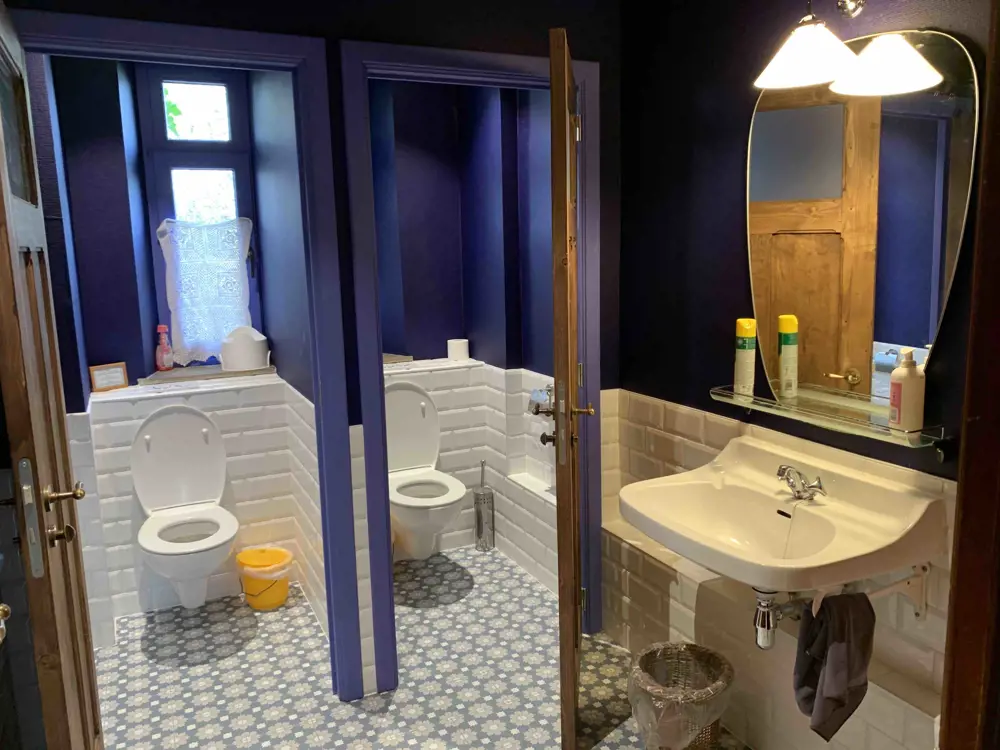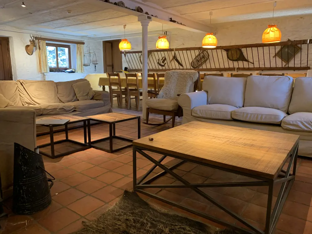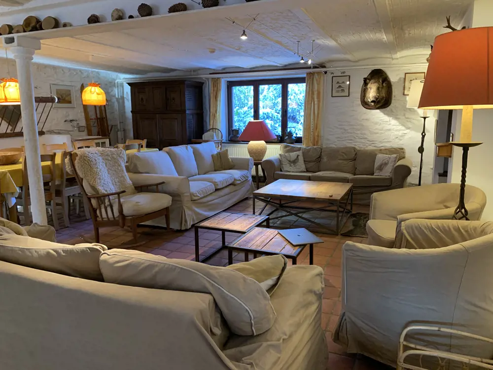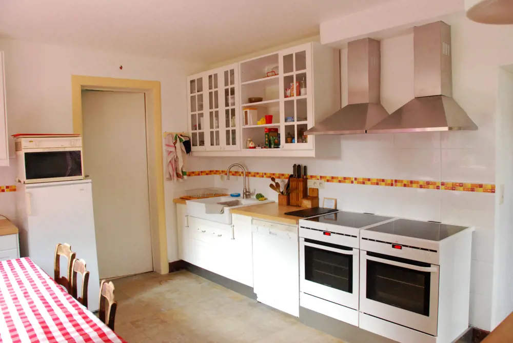 La maison dispose de 2 salons, une salle de jeu, une grande grange (non chauffée), d’une cuisine entièrement équipée, 5 toilettes, 3 salles de bain.